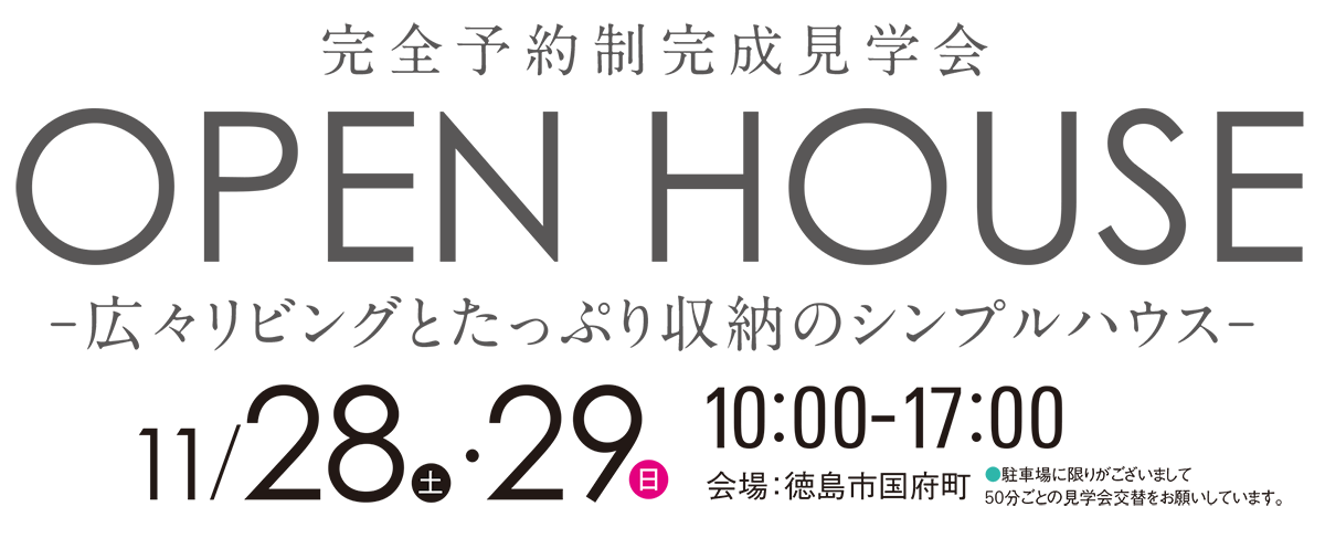 11/28(土)29(日)の2日間、徳島県国府町で新築住宅の完成見学会を開催します。