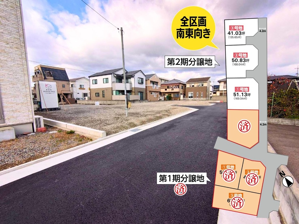 また第2期分譲地は、3区画ともすべて「南東向き」。