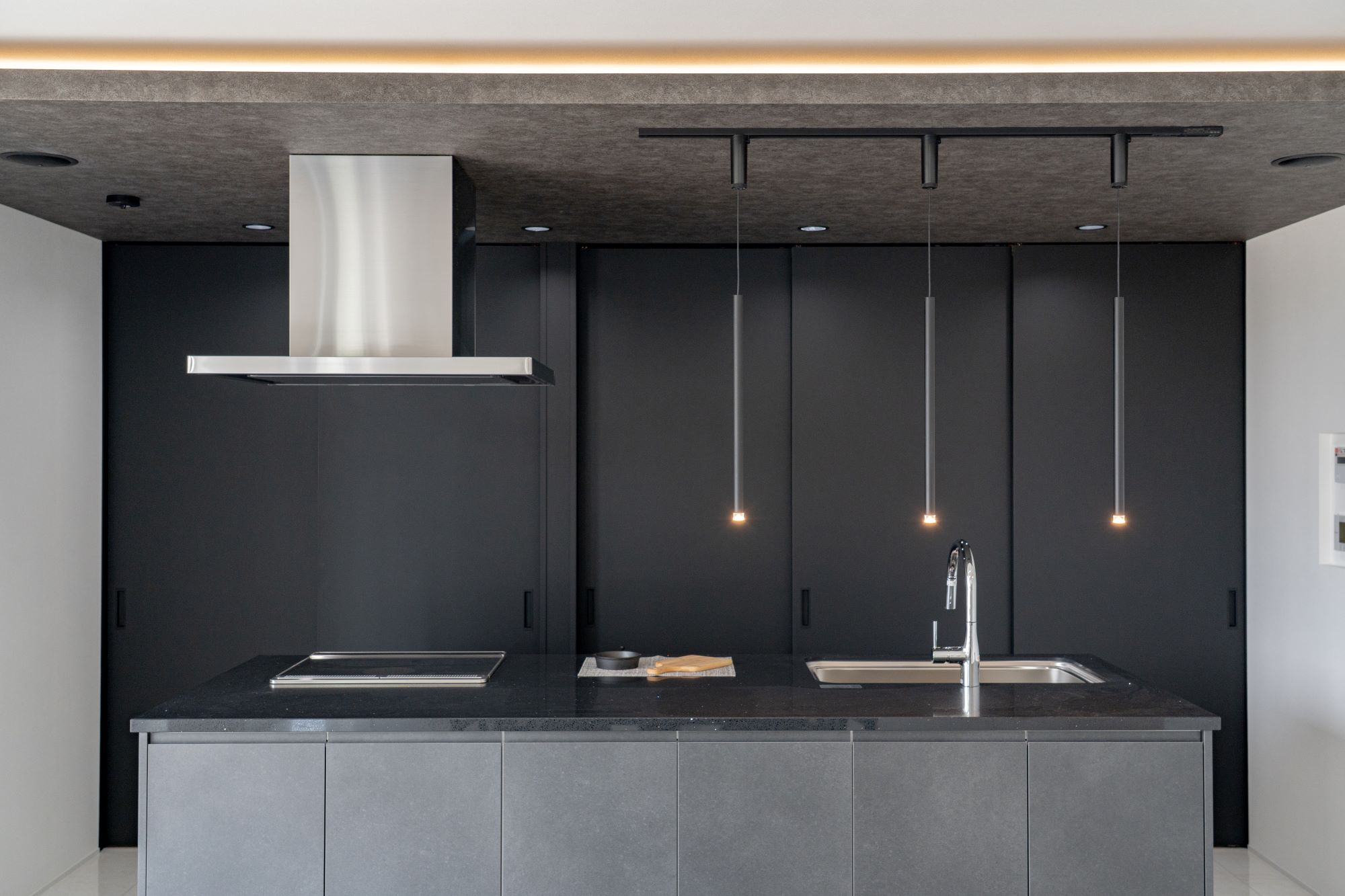 ▼片付けが苦手な方も一般的なカップボードでなく、パントリーを兼ねた扉付きのキッチン収納とすることで、急な来客時でもキッチンをすっきり見せることが可能。