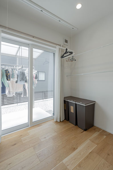 部屋干しスペースもあるので、雨の日には家の中で干してそのまま収納できるんですごい便利です。